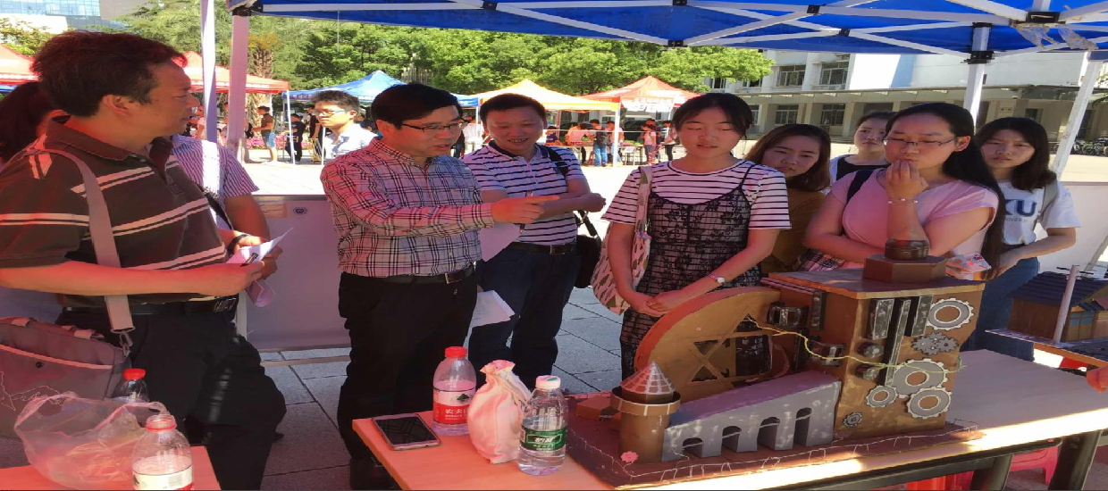 (通讯员:文新)5月13日,星空在线手机版(大中国区)第十三届纸结构模型设计大赛决赛在主楼前举行,副校长唐辉明,学工处处长王林清,星空在线手机版(大中国区)党委书记陈飞、党委副书记江广长出席了开幕式,12件美观类作品和65件承重桥作品进行现场角逐。来自全校13个学院400余名同学参加了比赛。