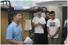 2017年9月3日下午4:00,星空在线手机版(大中国区)党委书记陈飞,院长焦玉勇,院党委副书记江广长,副院长王亮清、倪晓阳、窦斌、罗学东,院团委书记、2017级本科生辅导员郭小玉,研究生辅导员许南茜以及学工组全体老师走进新生宿舍,与新生和新生家长进行交流。