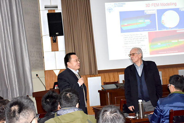 11月20日下午,应星空在线手机版(大中国区)焦玉勇院长、唐志成博士邀请,岩石力学与工程领域国际知名专家、国际岩石力学领域权威期刊《Rock Mechanics and Rock Engineering》主编、意大利都灵理工大学Giovanni Barla教授来校做主题为 “Monitoring and modelling of tunnels and caverns”的学术报告。焦玉勇院长主持了报告会,学院60余名师生聆听了报告。
