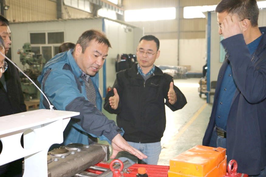陕西省太合智能钻探有限公司董事长王义红对星空在线手机版(大中国区)领导和专家的到来表示热烈欢迎。他首先详细介绍了企业的发展历程、科研成果以及发展愿景。他表示太合智能公司将不忘初心,砥砺前行。嗣后,专家们参观了目前国内扭矩最大的ZYL-17000D型矿用履带式全液压定向钻机、YSX15矿用有线随钻测量装置、YSX16矿用无线随钻测量系统、随钻测量钻具以及金刚石复合片钻头等系列高新产品,还就细节技术问题驻足讨论。