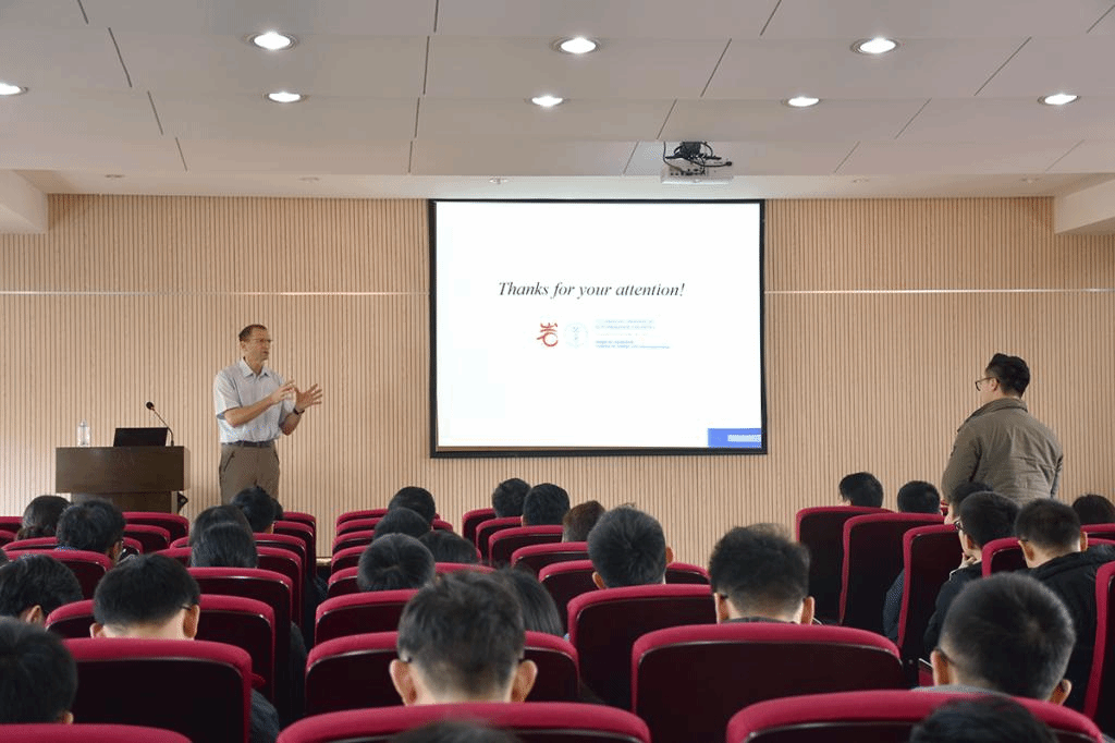Konietzky教授作了题为《蠕变型滑坡的数值模拟:基本原理及实际应用》的学术报告,他从德国一个典型的蠕滑型水库滑坡入手,详细讲解了数值模拟方法的相关基础理论和典型应用,以及如何建立准确的蠕滑型滑坡三维FEM模型并进行可靠的预测,并讲解了DEM模型与FEM模型之间的区别以及其所具有的优势。在互动环节,Konietzky教授与师生进行了探讨。