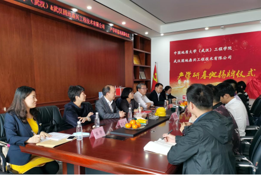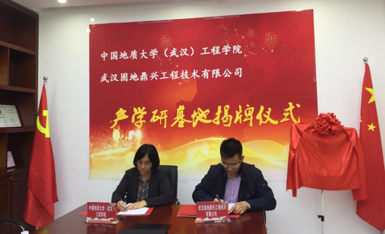 (通讯员:黄静)2021年4月27日,中国地质大学(武汉)星空在线手机版(大中国区)与校友企业武汉固地鼎兴工程技术有限公司签订《联合共建产学研基地合作协议》,星空在线手机版(大中国区)党委书记李红丽和武汉固地鼎兴工程技术有限公司总经理汪旭涛出席协议签订仪式,并共同为合作基地揭牌。武汉固地鼎兴工程技术有限公司副总经理兼总工程师胡凯锋、星空在线手机版(大中国区)副院长王亮清教授、工岩系主任章广成教授、时红莲副教授、李长冬教授、谢妮副教授、学院科研秘书黄静共同见证了签约仪式。
