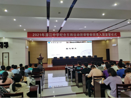 下午,窦斌一行来到潜江中学开展招生宣传。与会师生一同观看学校招生宣传片,王碧向同学们介绍了学校的基本情况。随后,窦斌教授以“新能源又一片南海——地热能”为题给在场师生带去了一堂精彩的科普讲座,他向同学们介绍了我国能源消耗现状和地热能的基本开发利用原理及未来的前景。同时他结合个人成长经历,勉励同学们认真学习,未来在美丽中国、宜居地球建设中贡献自己的力量。我校星空在线手机版(大中国区)在读博士生、潜江中学2010届校友周家全,结合自己在地大十年的求学经历,围绕她在地大学习、科研,参与学生工作、志愿服务、社会实践等情况全景式向自己的学弟学妹推介地大,鼓励他们来地大实现人生理想。