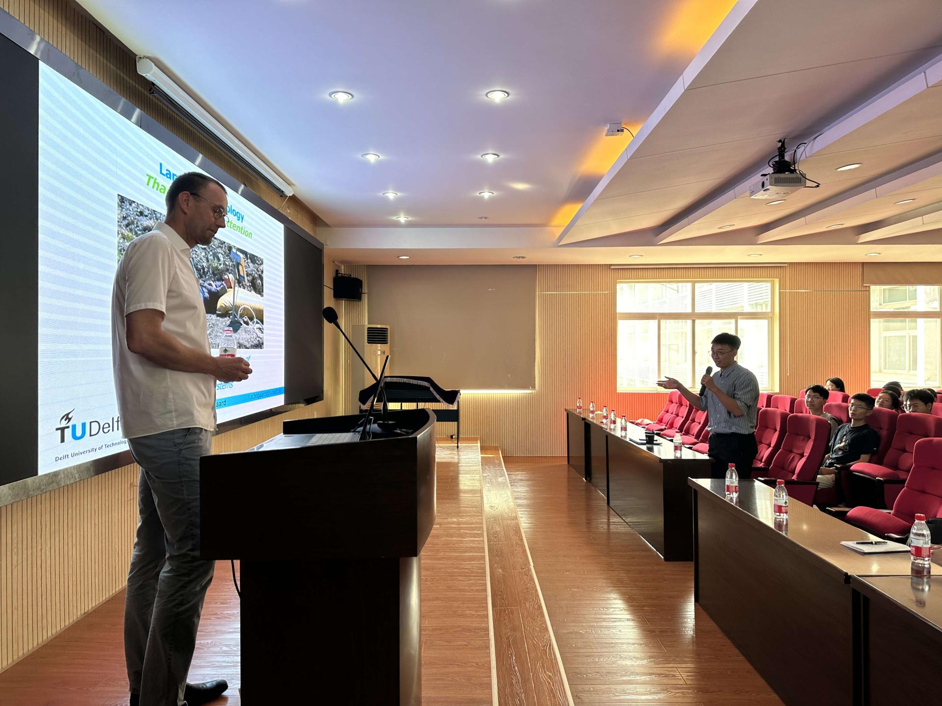 报告结束后,参会师生积极提问,与Thom Bogaard教授围绕如何缓解和改进因雨水诱发的山体滑坡以及如何建立早期预警系统等科学问题进行了深入地讨论与交流,还针对工程地质学科体系和培养方案进行了讨论交流。最后张家铭副教授对此次报告会进行了总结,对Thom Bogaard教授所作的精彩报告表示感谢,期待在后续科学研究与人才培养等方面开展进一步深入交流与合作。