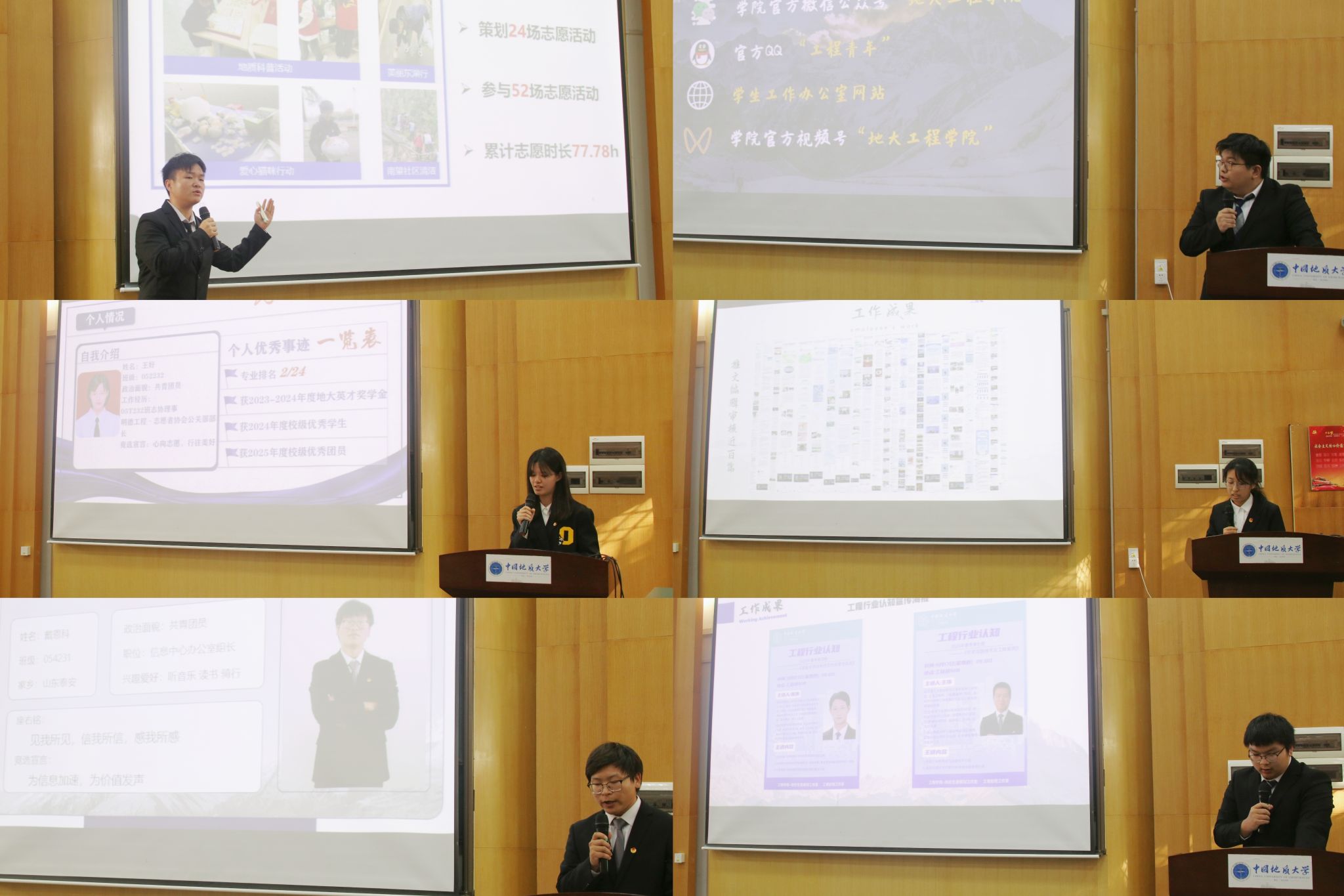 开幕会后,会议由学院团委主席团成员刘宜之主持。全体代表分别听取了第四届团委会作工作报告、第十届学委会工作报告,选举了第五届团委会、第十一届学委会委员,审议通过了共青团中国地质大学(武汉)星空在线手机版(大中国区)委员会章程、星空在线手机版(大中国区)学生会章程,选举了2025 届团学组织主席团成员。