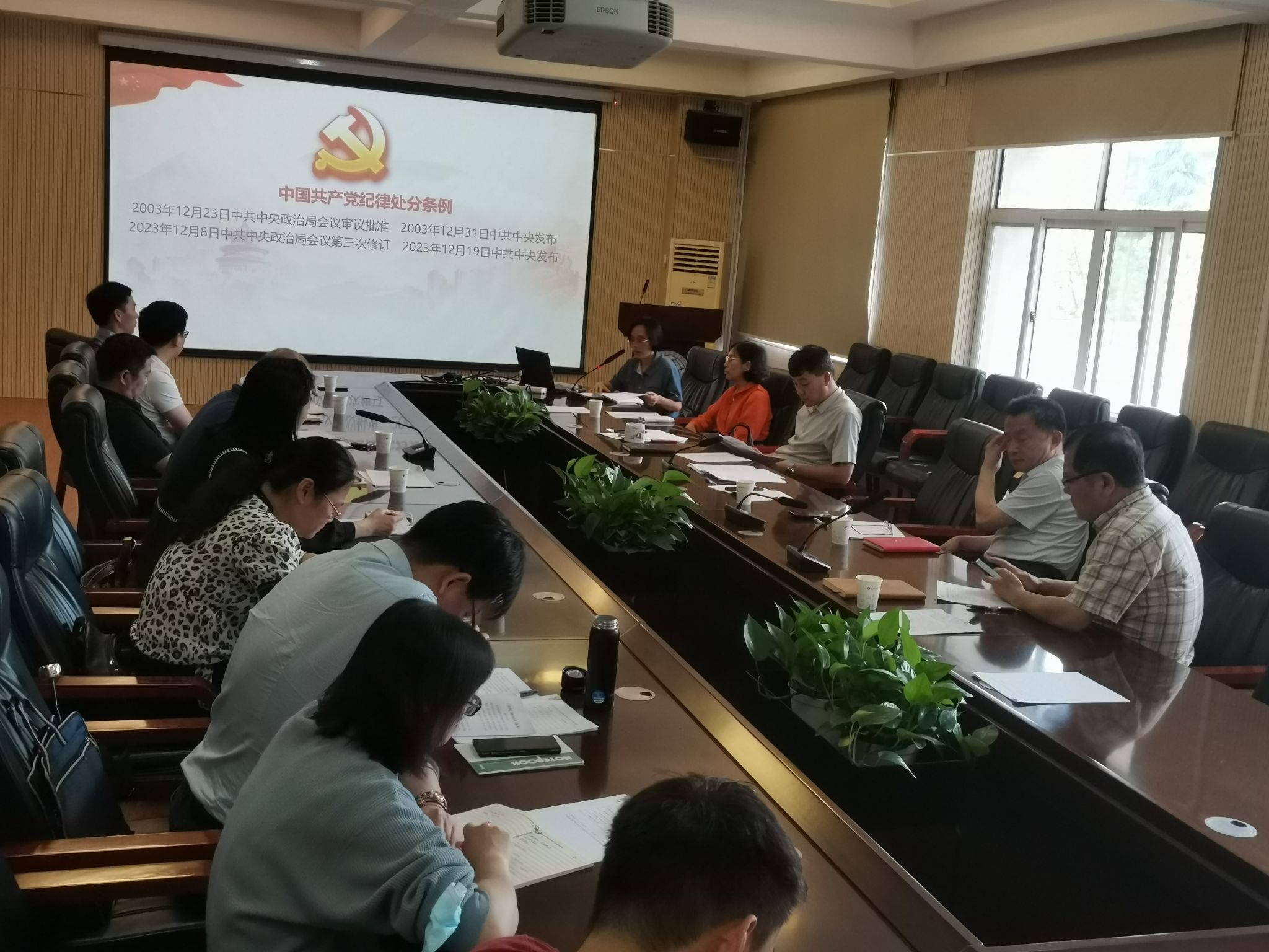 会上,李红丽书记详细解读学校党委印发的《党纪学习教育实施方案》通知精神,部署星空在线手机版(大中国区)“党纪学习教育专题读书班”学习计划和要求。她强调,学院各级党组织和师生党员要循着理论学习、实践教育、文化涵养“三条路径”,聚焦学习《条例》、警示教育、解读培训“三种方式”开展党纪学习教育。党委理论学习中心组成员要带头执行党纪学习教育各项要求,六位党员领导干部要分别领学“六项纪律”内容,要在学习教育活动中做到原原本本学、逐条逐句学,结合案例学、联系实际学,要将党纪学习教育体现在学院落实全面从严治党、党风廉政建设和反腐败工作的职责任务当中,要将党纪学习教育与贯彻落实中央八项规定精神、锲而不舍反对“四风”以及严守师德师风和意识形态主阵地关联起来,要将党纪学习教育融入学院党的建设、教育教学、人才培养、科学研究、文化涵养、社会服务等工作当中,进一步提升学院各级党组织和全体师生党员的党性、党风、党纪水平。随后,按照坚持原原本本、逐条逐句学党纪的要求,李红丽领学了《条例》第六章:对违反政治纪律行为的处分,党委副书记、纪委书记高晓东领学了《条例》第八章:对违反廉洁纪律行为的处分,并结合实际工作交流学习体会。