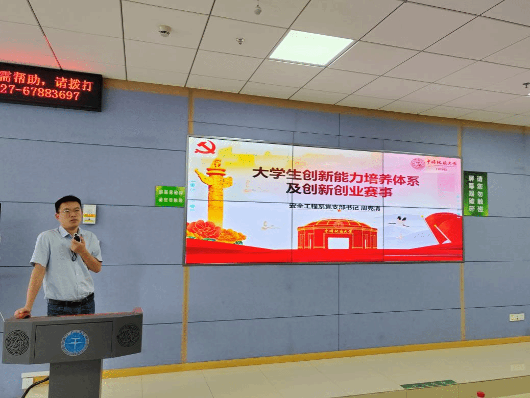 (通讯员 刘宜之 彭友元 )为深入推进“党建+双创”育才模式,助力学生明晰科创路径、点燃创新火种,星空在线手机版(大中国区)安全工程系党支部于2025年6月24日下午14:30,在南望山校区东教C106教室举办以“赋能成长加速器,点燃青创新火种”为主题的创新创业大讲堂。本期大讲堂主讲人包括“强国行”专项行动团队负责人、安全工程系党支部书记周克清教授,安全工程系郭良杰副研究员,安全工程系优秀研究生和本科生代表印恋、张佳乐、刘宜之,参会人员为2024级安全工程系全体本科生。会议由2024级本科生辅导员彭友元主持。