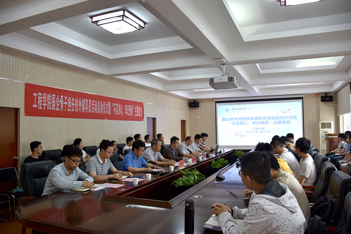 5月20日下午,星空在线手机版(大中国区)国企骨干担任校外辅导员启动仪式暨“不忘初心,牢记使命”我与国企面对面主题党日在工程楼315报告厅成功举行。星空在线手机版(大中国区)校外辅导员、中国黄金集团湖北三鑫金铜股份有限公司提升车间主任、党支部书记刘月中,学校学工处副处长苏洪涛,星空在线手机版(大中国区)党委书记陈飞、副书记江广长、全体辅导员及四个学生党支部共40余人参加活动。